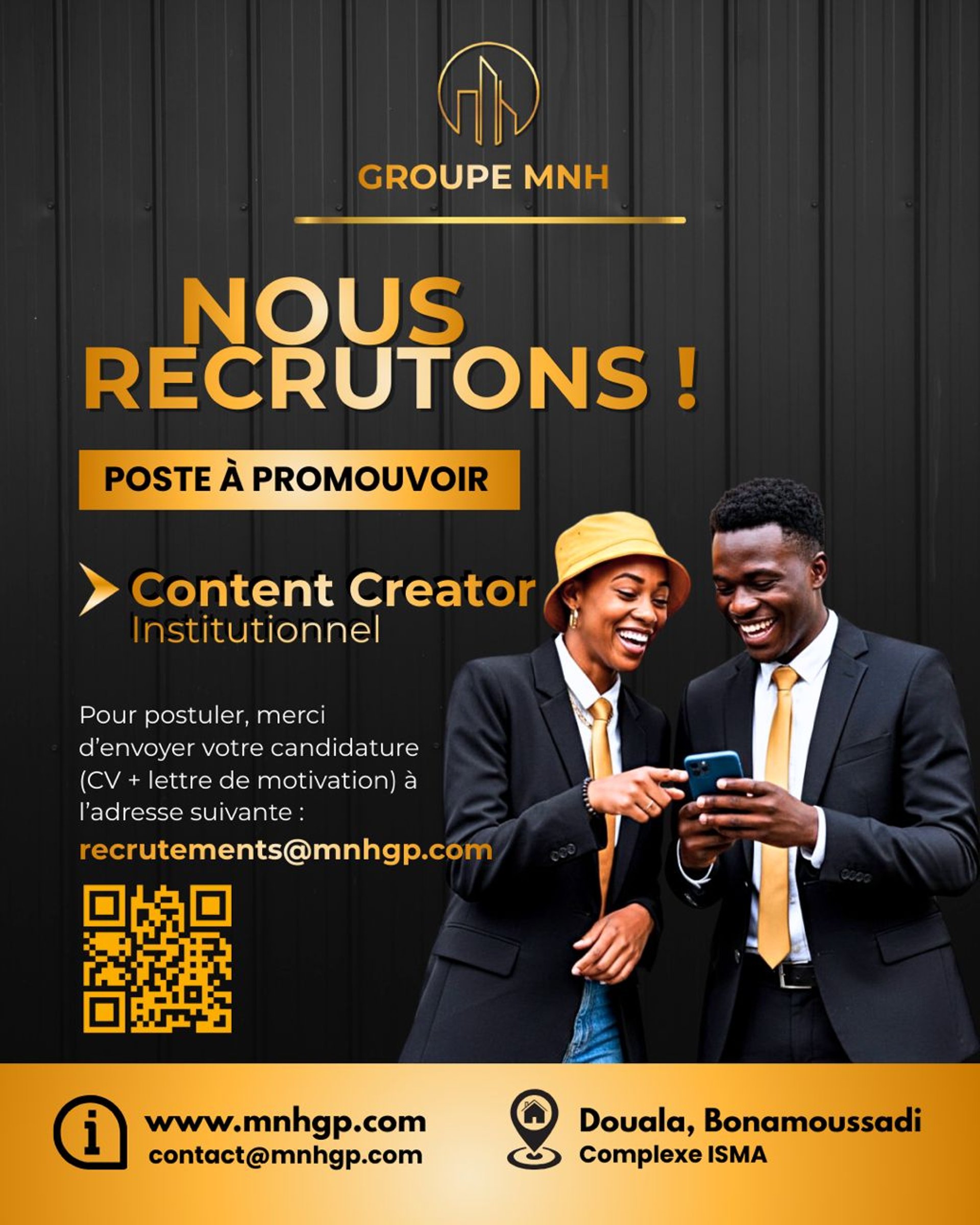 Contactez le Groupe MNH pour travailler avec des experts en marketing digital, consulting, intermediation et prestation de service au Cameroun. Nous sommes là pour vous accompagner.